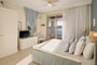 The natural stone and whitewashed wood combined with subtle tones of yellow, white and blue blend perfectly with the island theme of sun, sea and sand. Whilst the light and airy interior is cosy and charming, the generous balconies and terraces enjoy far-reaching views over the pool to the sea. The soft white candle lights, comfortable couches under whitewashed pergolas and the fragrance of flowering jasmine create an inviting magical ambience.